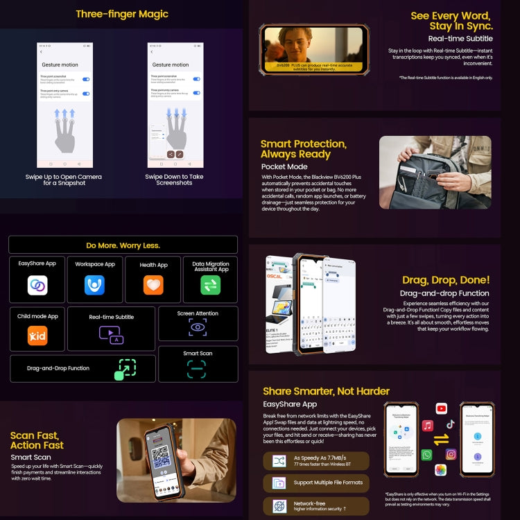 En resumen, el Blackview BV6200 Plus ofrece rendimiento, almacenamiento y resistencia en un solo equipo: ideal para quienes buscan un móvil fiable fuera de la oficina. Compra ahora y disfruta de un smartphone preparado para cualquier reto.