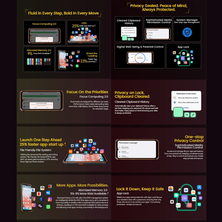 • Sistema operativo: Android 14 optimizado para seguridad y compatibilidad con las últimas apps.
