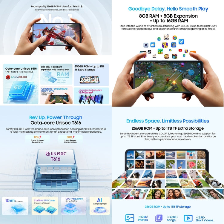 En resumen, el Blackview COLOR 8 reúne potencia, seguridad biométrica y amplio almacenamiento en un móvil 4G pensado para el día a día. Si buscas un dispositivo equilibrado con Android 13 y opciones de ampliación, adquiere el Blackview COLOR 8 y disfruta de rendimiento y tranquilidad desde hoy mismo. Pide el tuyo ahora y aprovecha su combinación de características y valor.