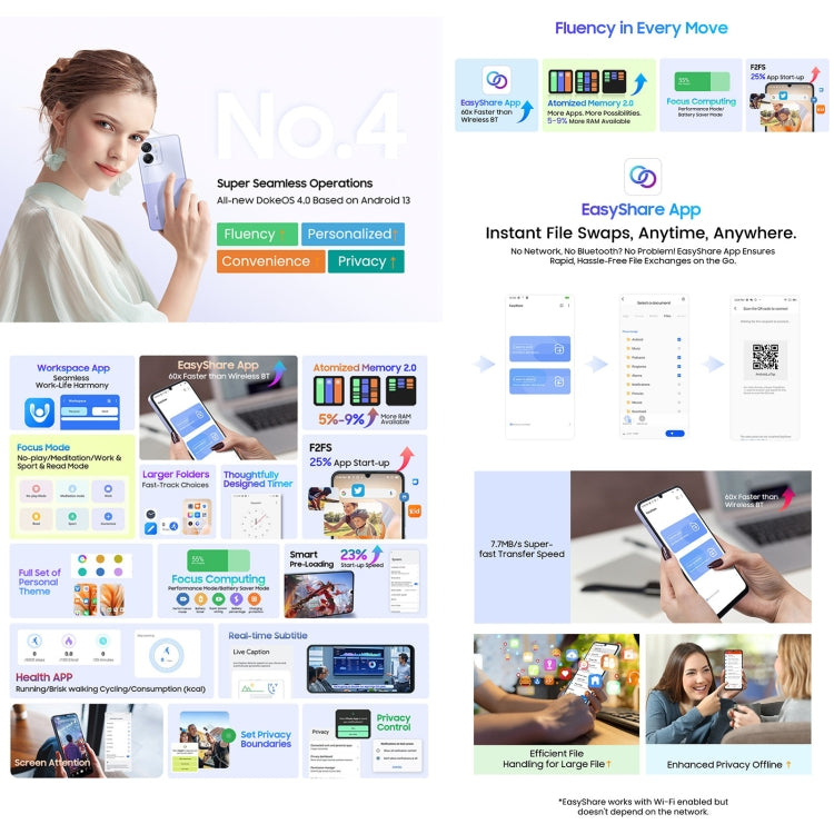 • Sistema operativo: DokeOS 4.0 sobre Android 13, con optimizaciones de interfaz y seguridad para una experiencia actualizada.
