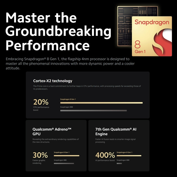- Procesador: Qualcomm Snapdragon 8 Gen1 4nm — potencia máxima para apps y juegos intensivos.