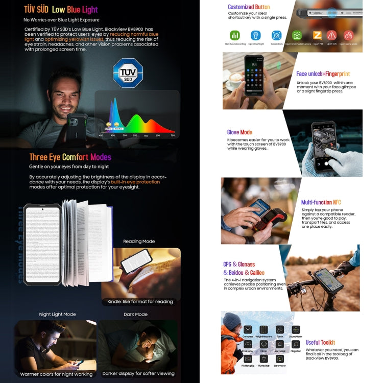 • Resistencia y durabilidad: Diseño IP68/IP69K y MIL-STD-810H ante agua, polvo y golpes.