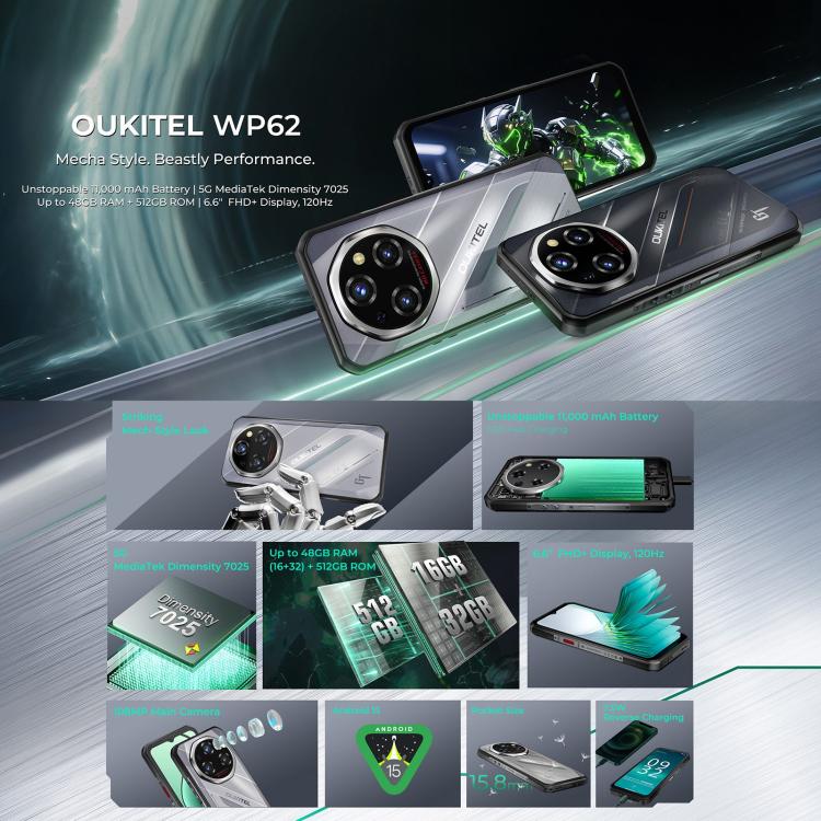 Oukitel WP62 Rugged Smartphone 16GB+512GB 108MP Cámara 5G Batería 11000 mAh