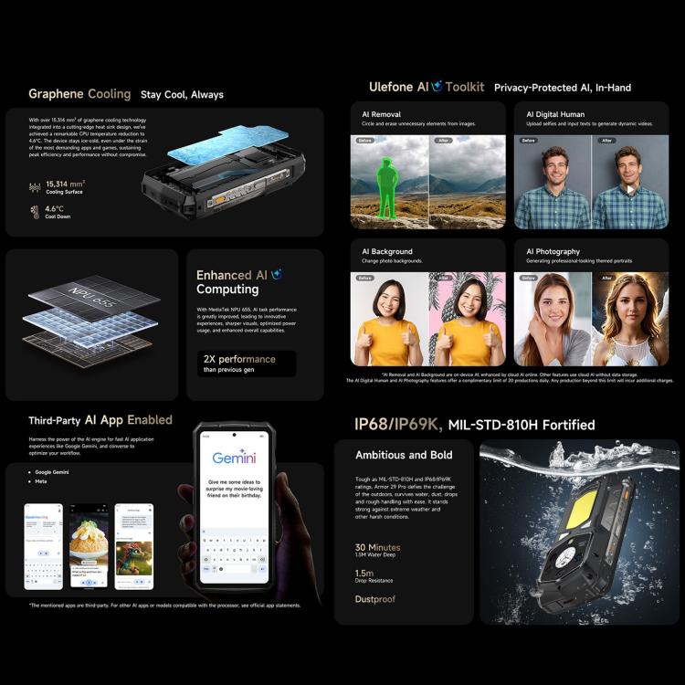 En resumen, el Ulefone Armor 29 Pro combina potencia 5G, enorme capacidad de almacenamiento y visión nocturna en un equipo resistente pensado para entornos exigentes. Si buscas un móvil durable sin sacrificar rendimiento, adquiere ahora el Armor 29 Pro y lleva tu productividad y exploración nocturna al siguiente nivel.