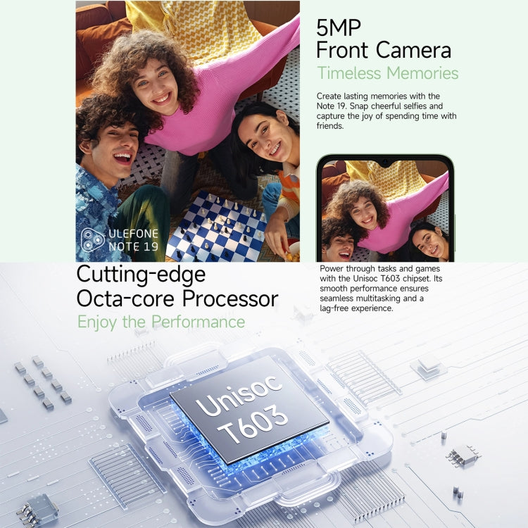 El Ulefone Note 19 es un smartphone asequible pensado para quienes requieren conectividad 4G confiable, autonomía y funciones inteligentes sin complicaciones. Con Android 14 Go y un rendimiento equilibrado gracias al procesador Unisoc T603 de ocho núcleos y 3 GB de RAM (con RAM virtual configurable), ofrece una experiencia fluida para redes sociales y entretenimiento diario. Su desbloqueo por huella lateral y reconocimiento facial aporta seguridad rápida y práctica.