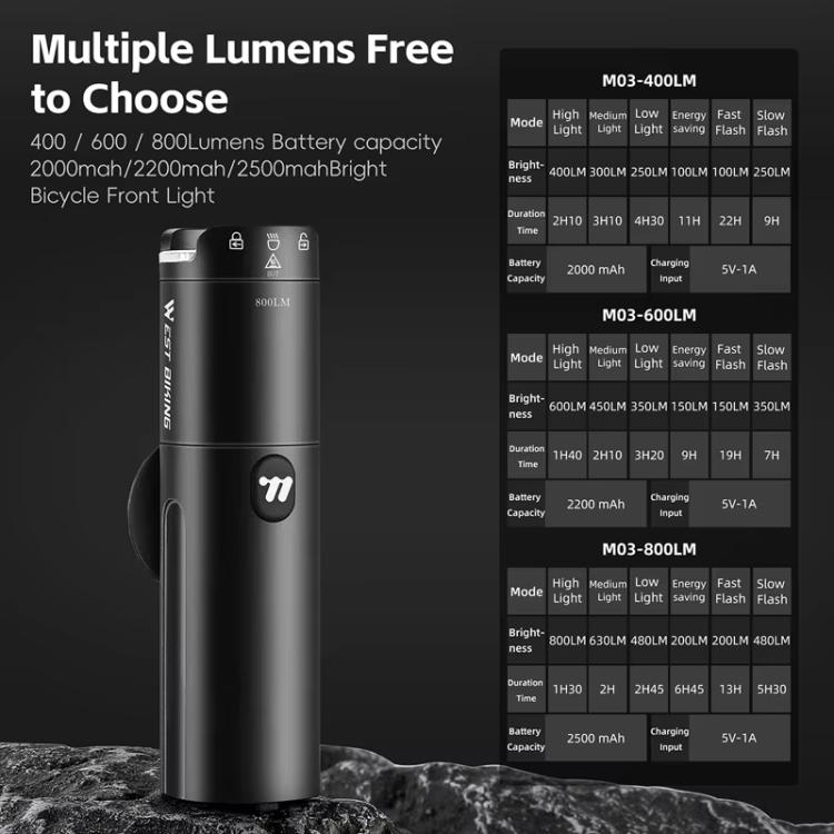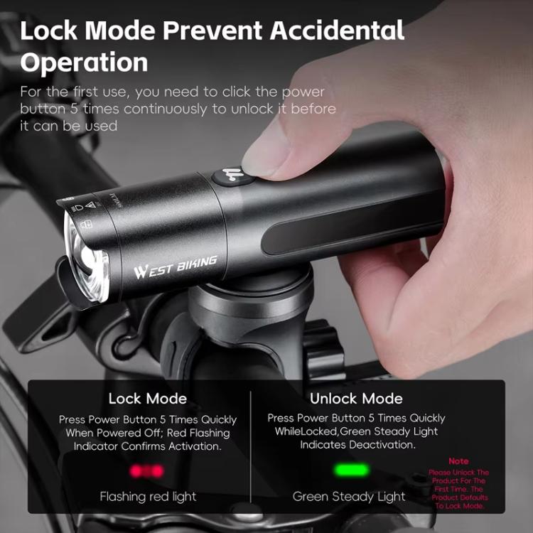 WEST BIKING Faro Bicicleta Recargable Alto Brillo 6Niveles Lámpara Visibilidad