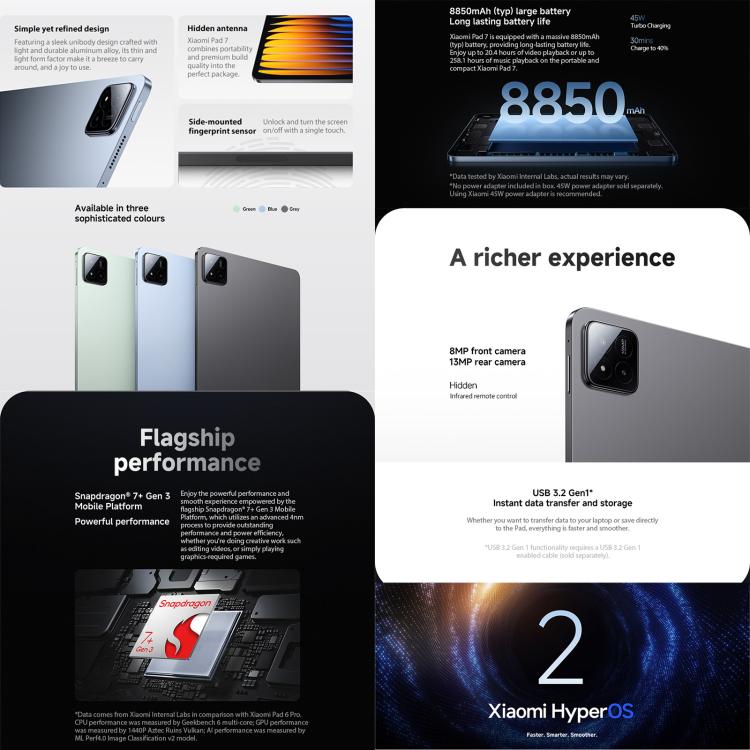 La Xiaomi Pad 7 combina potencia, pantalla avanzada y gran capacidad de almacenamiento en un equipo versátil y atractivo. Si buscas una tablet que rinda para trabajo, estudio y ocio, esta opción ofrece una experiencia equilibrada y de alta calidad. Compra ahora y descubre rendimiento y creatividad sin límites.