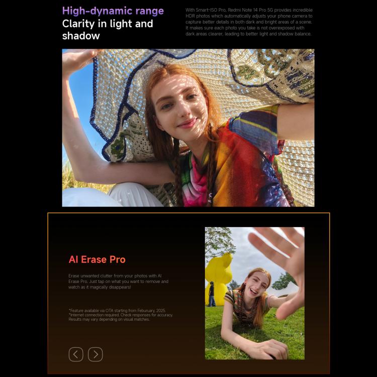 El Xiaomi Redmi Note 14 Pro 5G Global es un smartphone potente pensado para usuarios exigentes que buscan rendimiento, autonomía y fotografía avanzada. Con 12 GB de RAM y 512 GB de almacenamiento, combina el procesador MediaTek Dimensity 7300-Ultra y la pantalla CrystalRes AMOLED de 6,67" a 120 Hz para ofrecer fluidez en juegos, multitarea y consumo multimedia sin compromisos.